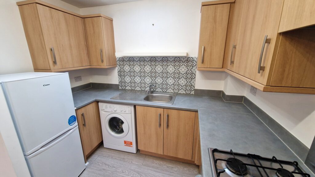 Fair-Way Properties are pleased to offer this one bedroom first floor apartment located on the popular Hallam Fields development situated conveniently off the A6, Loughborough Road and within a short drive of Leicester City centre. The property comprises of an entrance hallway leading to an open plan living room and modern fitted kitchen area which includes an integrated oven with gas hob, extractor and washing machine and fridge freezer. There is a spacious double bedroom with wardrobe cupboard and a shower room with white suite. The property benefits from Gas Central Heating and UPVC double glazing throughout. There is off road sheltered parking for one car, with a storage cupboard. The property is available to rent on an unfurnished basis. This advert only shows the calendar monthly rental cost of the property.