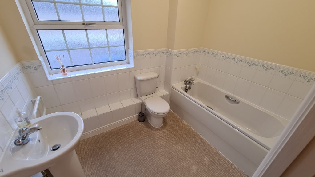 Bathroom: 2.66m x 1.91m (8'9" x 6'3"), A large bathroom with bath, shower, wash hand basin, W/C and double glazed window.