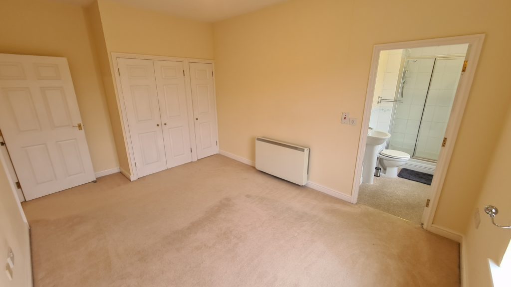 Bedroom 1: 3.13m x 4.77m (10'3" x 15'8"), A large bedroom with a double glazed window, electric storage heater, storage cupboard and access to the en-suite.