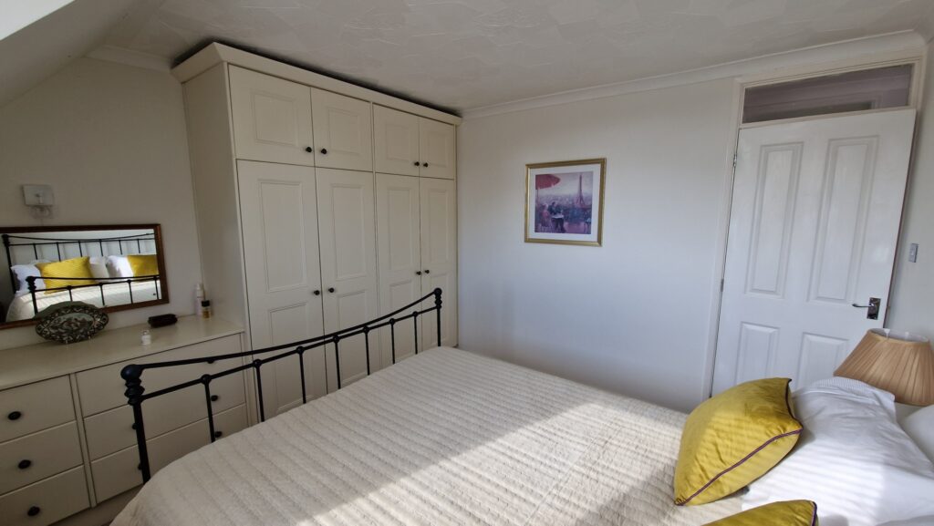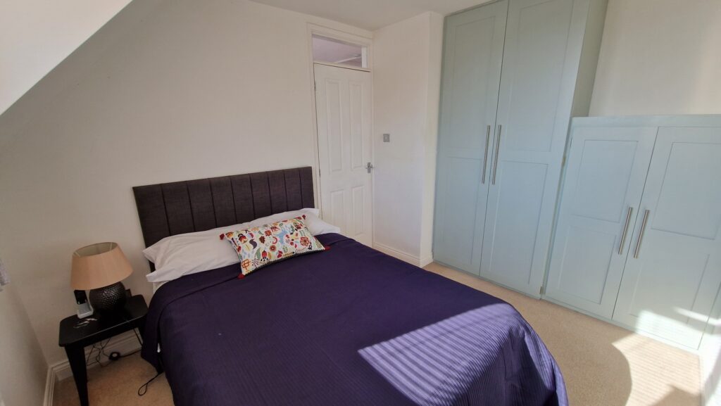 Bedroom 2: 2.75m x 3.65m (9'0" x 11'12"), Bedroom 2 is located to the front of the property over the dining area. It benefits from built-in wardrobes and matching cupboards, a large dormer window, and a gas central heating radiator.