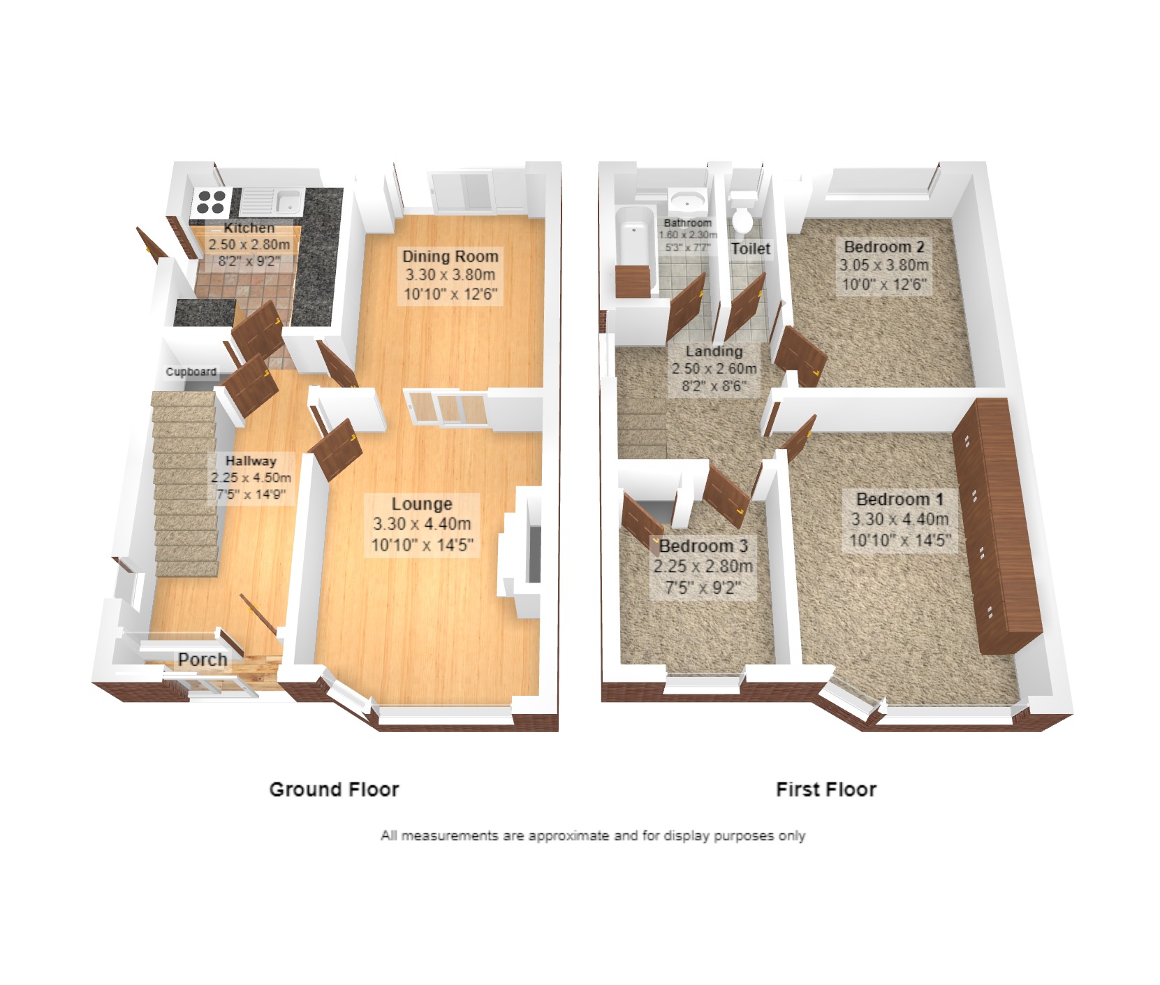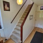 Hallway: 2.25m x 4.50m (7'5" x 14'9"), The hallway is accessed through the porch via a UPVC double glazed door. There are two UPVC double glazed windows, laminate flooring, and a gas central heating radiator. The hallway provides access to the lounge, dining room, kitchen and an understairs cupboard via wooden doors, and there is a staircase that leads to the first floor.