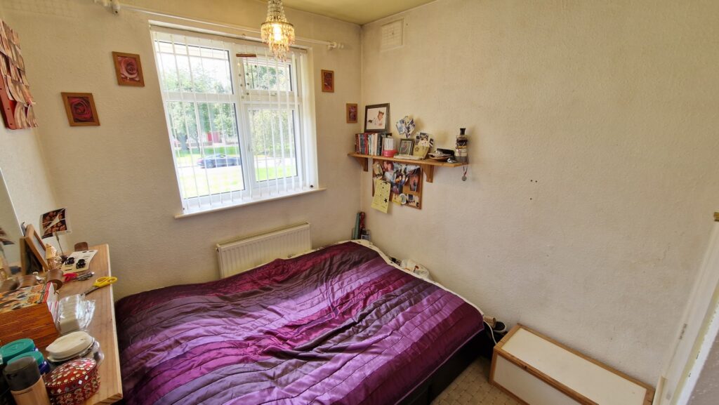 Bedroom 3: 2.25m x 2.80m (7'5" x 9'2"), Bedroom 3 is located to the front of the property over the hallway. It benefits from a UPVC double glazed window, a gas central heating radiator, and a built-in cupboard.