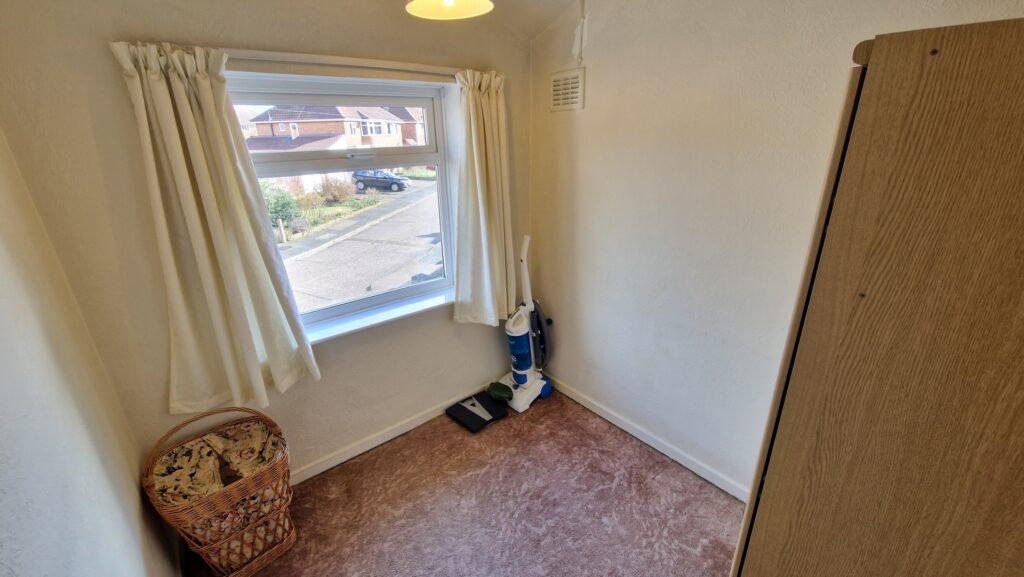 Bedroom 2: 3.35m x 3.60m (10'12" x 11'10"), Bedroom 2 is located to the rear of the property and features a UPVC double glazed bay window overlooking the garden and fields beyond. The room also benefits from built-in cupboard that houses the hot water tank.