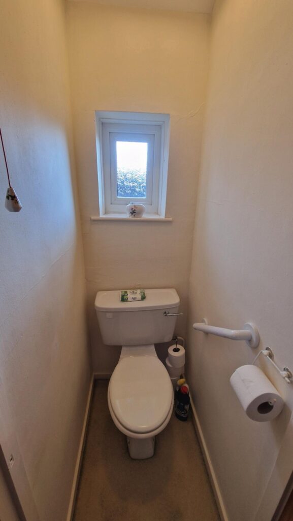 Toilet: 0.90m x 0.75m (2'11" x 2'6"), The toilet is separate to the bathroom and features a white toilet with a UPVC double glazed window over the top.