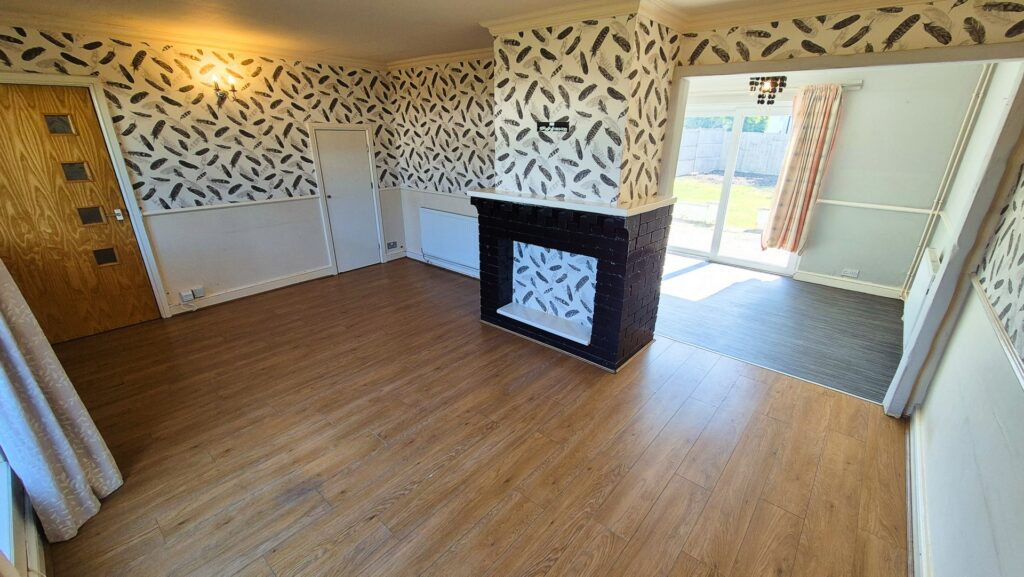 Living Room: 5.40m x 3.70m (17'9" x 12'2"), The lounge can be accessed from either the front door, the stairs, or the kitchen / diner. It features a large chimney breast with space for an electric fire with a brick surround. The room also benefits from a gas central heating radiator, a large UPVC double glazed window overlooking the front of the property and an understairs cupboard.