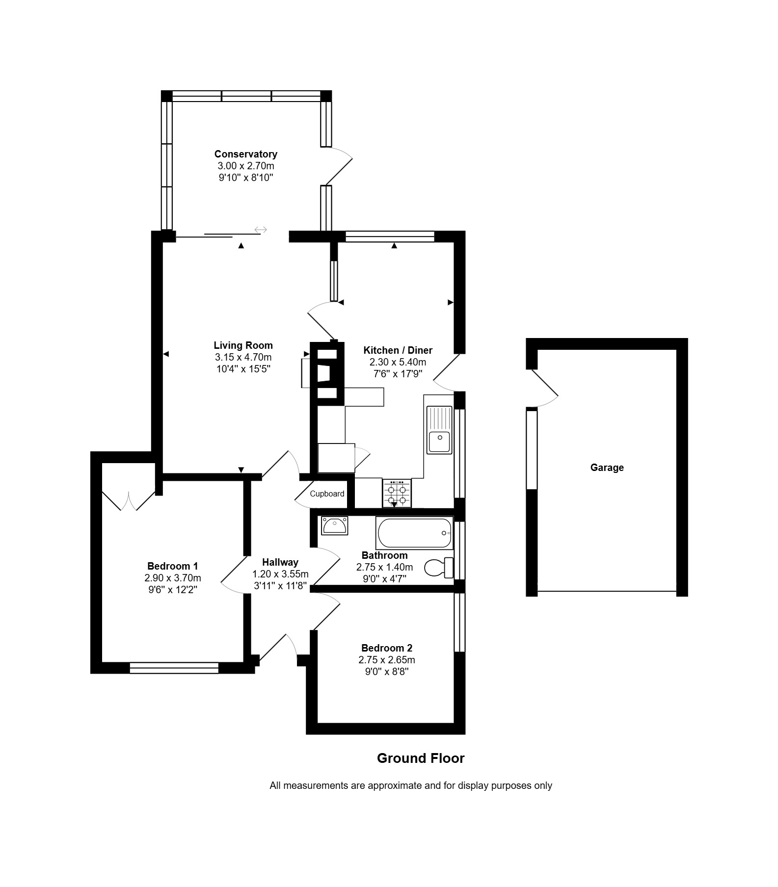 Bedroom 1: 2.90m x 3.70m (9'6" x 12'2"), Bedroom 1 is located to the front of the property and benefits from a built-in wardrobe, a gas central heating radiator and a UPVC double glazed window.