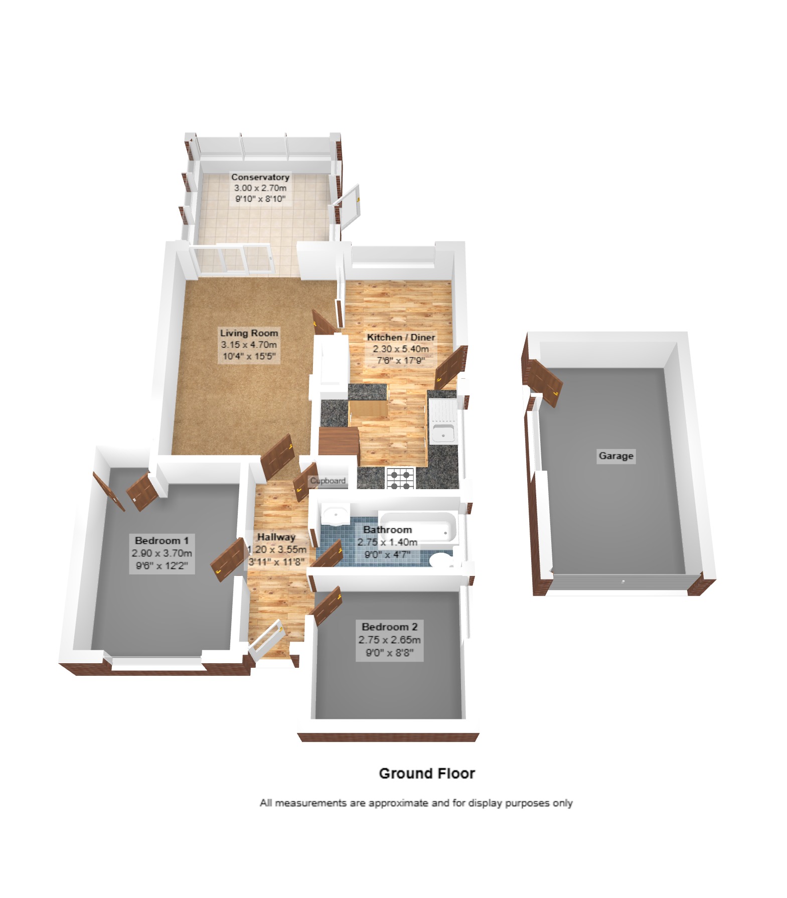 Living Room: 3.15m x 4.70m (10'4" x 15'5"), The living room is located to the rear of the property and features a wall mounted inset gas fire. The room also benefits from a large double glazed sliding patio door that leads to the conservatory and an internal wooden single glazed door with matching window that leads to the kitchen / diner.