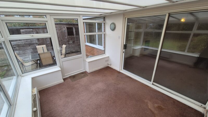 Conservatory: 3.00m x 2.70m (9'10" x 8'10"), The UPVC conservatory features windows on 3 sides with one also having a door that leads to the patio. There is a Perspex roof, and a wall mounted electric heater and light.