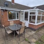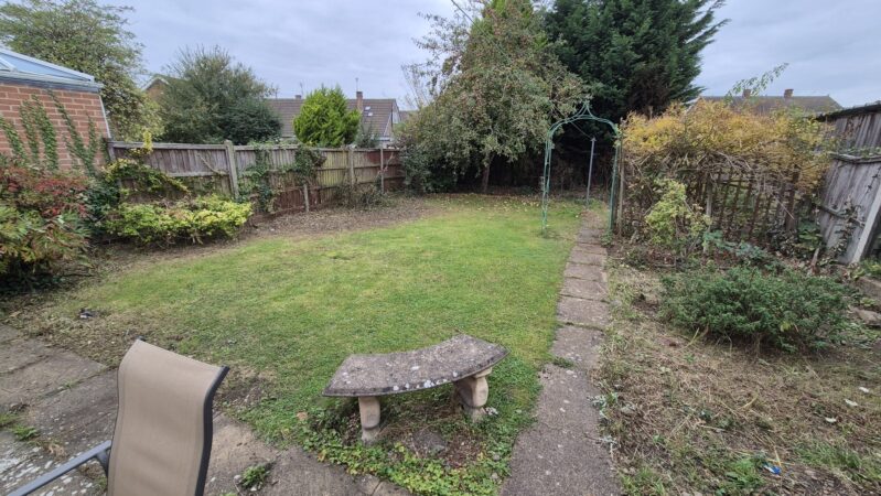 Outside: Outside there is driveway parking for 2-3 vehicles, a standalone single garage and 2 wooden sheds. To the rear of the property there is a garden that benefits from a small patio area located next to the conservatory and a large lawn and several mature plants, bushes, and trees.