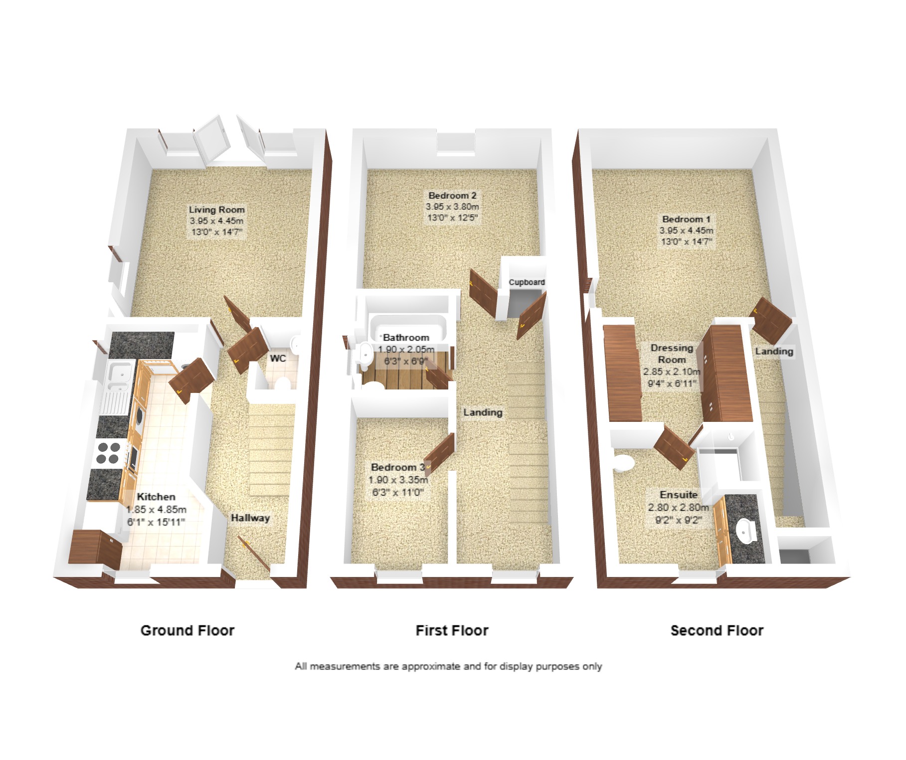 Fair-Way Properties are pleased to offer this 3-bed, 3 storey semi-detached house located in the popular village of Birstall, which offers a thriving village centre with local schools and amenities close by. The property's location provides convenient access to the A6, A46 and M1 and makes this an ideal location to commute from. The property briefly comprises of an entrance hall that leads to a living room, a kitchen, and a downstairs WC. On the first floor there is a large double bedroom, a single bedroom, and a family bathroom. On the second floor there is the principal bedroom which benefits from a dressing room and an ensuite shower room. To the rear of the property is a small easy to maintain garden with a small patio area, a large lawn, and several plants and 2 small trees. To the side of the property there is a single garage set within a block of 3 with parking in front which is accessed via a shared driveway.