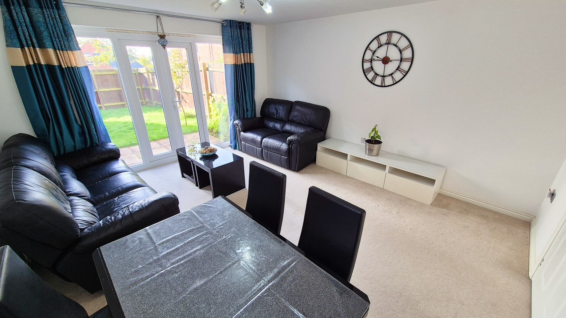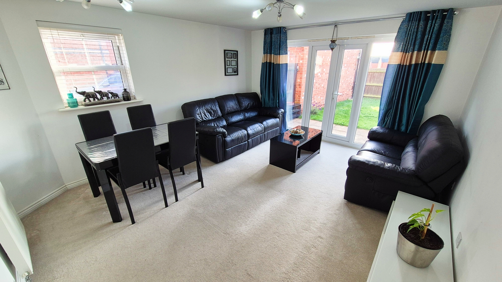 Living Room: 3.95m x 4.45m (12'12" x 14'7"), The living room is located to the rear of the property. It benefits from 2 gas central heating radiators, a UPVC double glazed window overlooking the drive and a set of UPVC French doors with matching windows either side that overlook the garden.