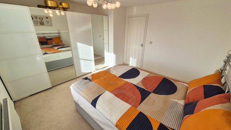 Bedroom 2: 3.95m x 3.80m (12'12" x 12'6"), Bedroom 2 is located on the first floor towards the rear of the property over the living room. It benefits from 2 large sliding door wardrobes (which can be left by negotiation), a UPVC double glazed window, and a gas central heating radiator.