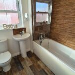 Bathroom: 1.90m x 2.05m (6'3" x 6'9"), The bathroom is located on the first floor towards the centre of the property between bedrooms 2 and 3. The bathroom benefits from a white suite including a push button toilet, a wash hand basin with a mixer tap and matching pedestal, and a bath with a mixer tap with a shower attachment, and a glass shower screen.