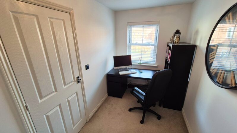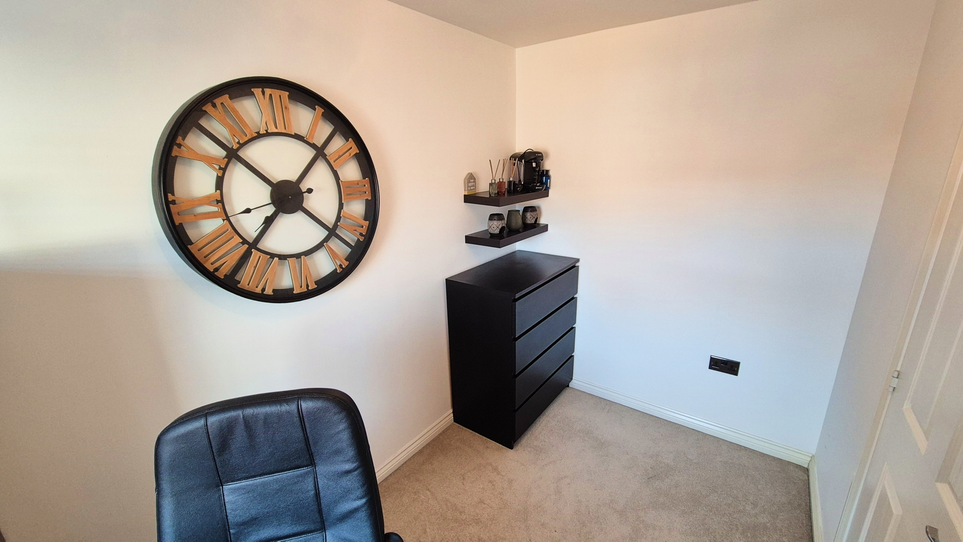 Bedroom 3: 1.90m x 3.35m (6'3" x 10'12"), Bedroom 3 is located on the first floor towards the front of the property over the kitchen. It benefits from a UPVC double glazed window and a gas central heating radiator.