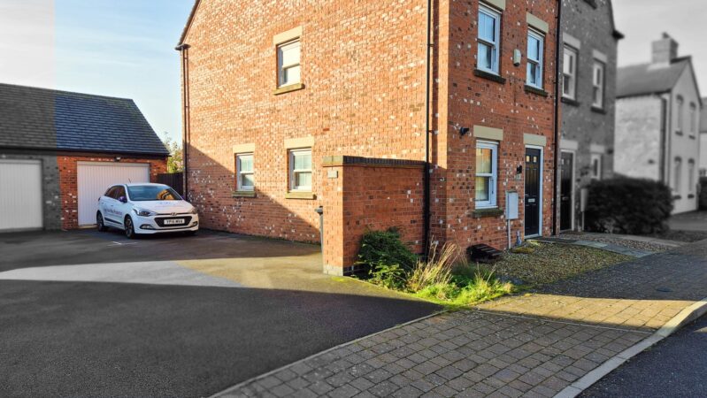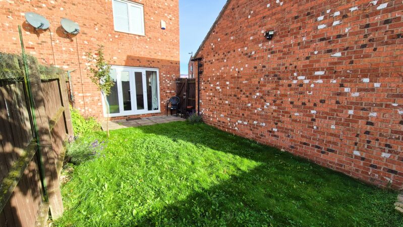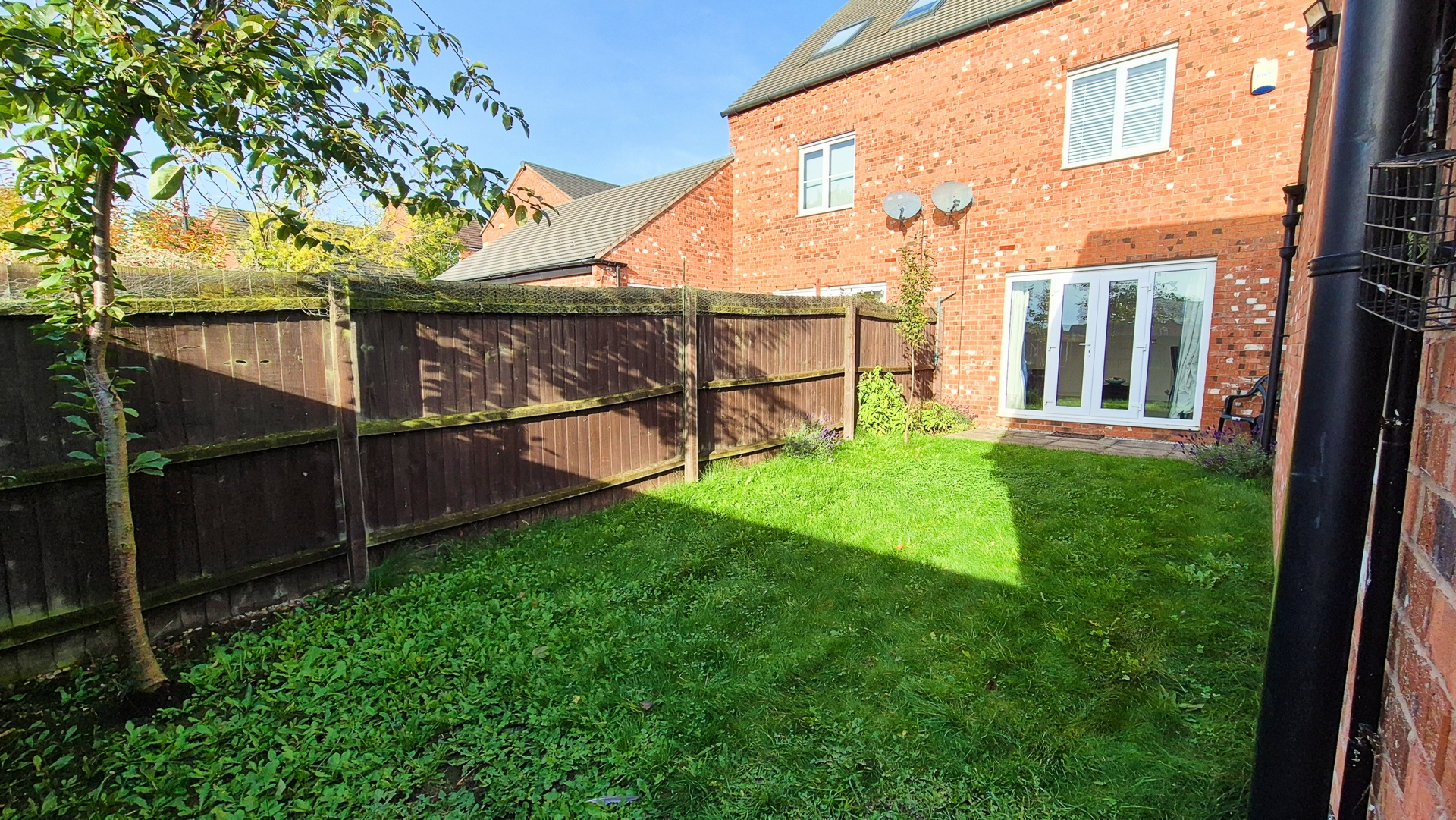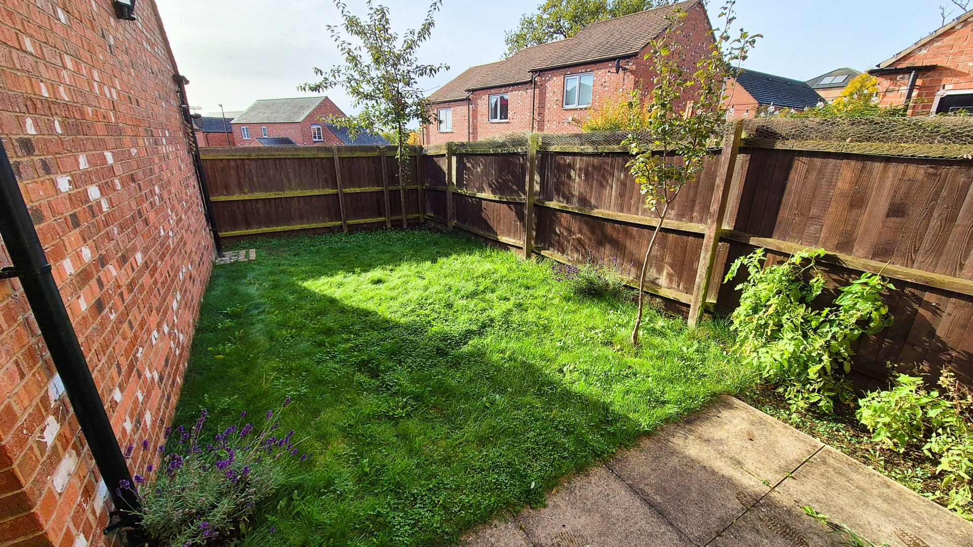 Outside: To the rear of the property is a small easy to maintain garden with a small patio area, a large lawn, and several plants and 2 small trees. To the side of the property there is a single garage set within a block of 3 with parking in front which is accessed via a shared driveway.