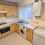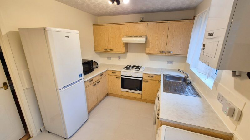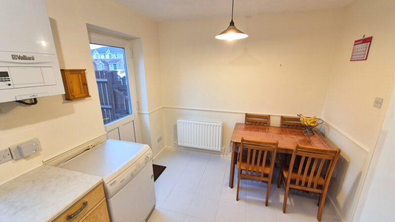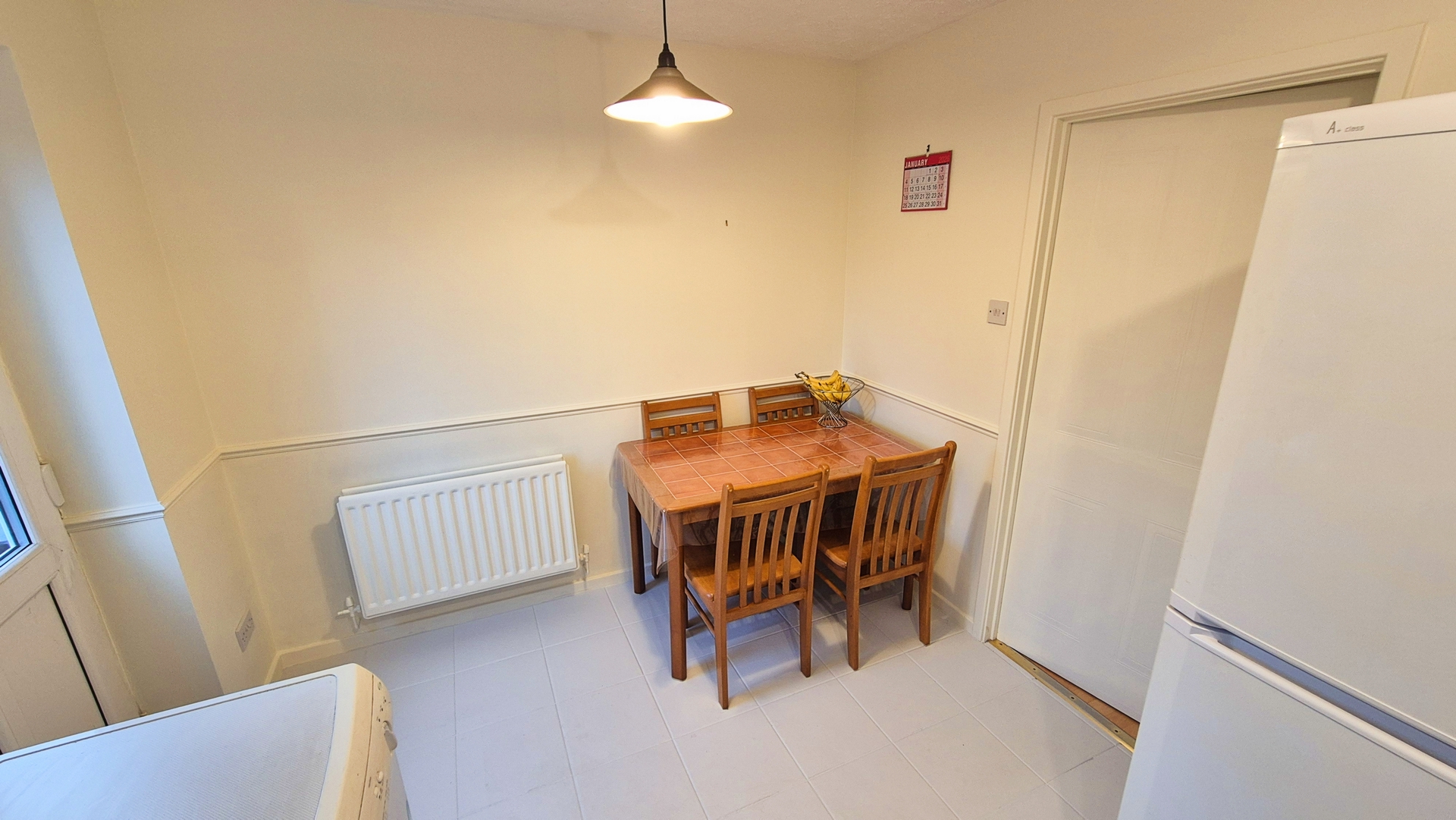 Kitchen / Diner: 4.15m x 2.65m (13'7" x 8'8"), The kitchen / diner is located to the rear of the property and can be accessed either from the lounge or through the UPVC door that leads to the garden. The room features matching wall and base units with wood effect doors and a marble effect worktop. There is a built-in electric oven and a gas hob with an extractor hood above. There are also spaces for a freestanding washing machine, tumble dryer, and fridge freezer. The kitchen / diner benefits from tiled flooring, a UPVC double glazed window, a gas central heating radiator and also a modern Vaillant boiler.