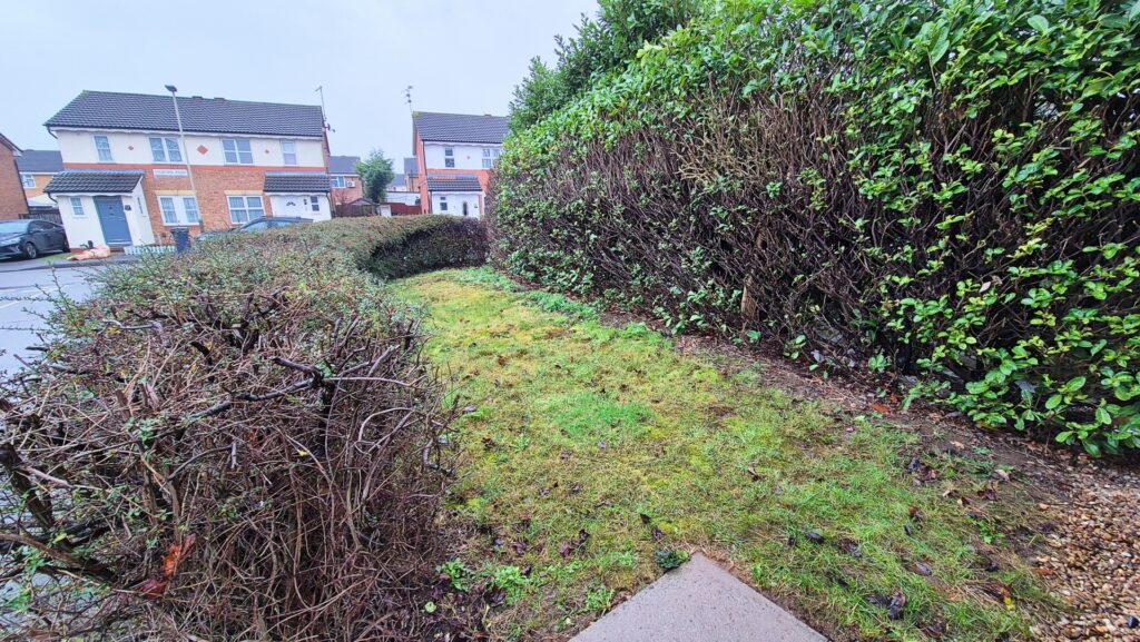 Outside: To the rear of the property is an easy maintenance garden made up of a patio and a lawn area. There is a wooden shed in the corner of the garden and 2 wooden gates providing side access and direct access to the parking behind. To the front of the property there is a large, lawned area surrounded by hedges. This could potentially be used as a driveway subject to planning permission and the installation of a dropped kerb.
