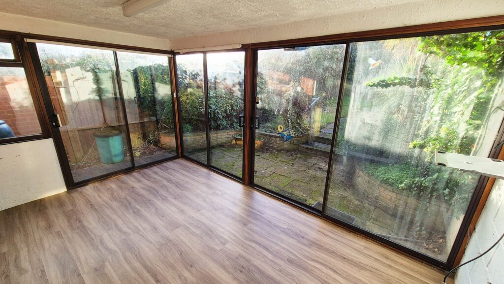 Sun Room: 4.30m x 2.60m (14'1" x 8'6"), The sun room is located to the rear of the property on the first floor. It benefits from 3 double glazed sliding patio doors and a matching double glazed window all allowing plenty of natural light.