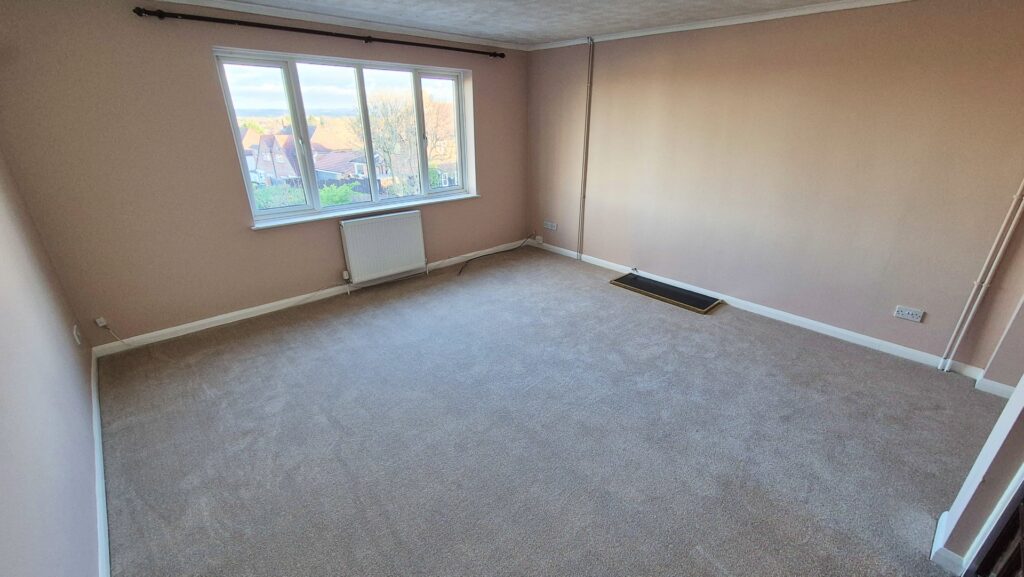 Living Room: 4.35m x 4.30m (14'3" x 14'1"), The living room is located on the second floor towards the front of the property and features a large UPVC double glazed window with stunning views overlooking Birstall.