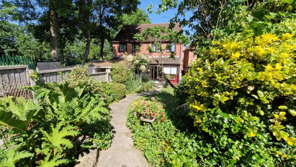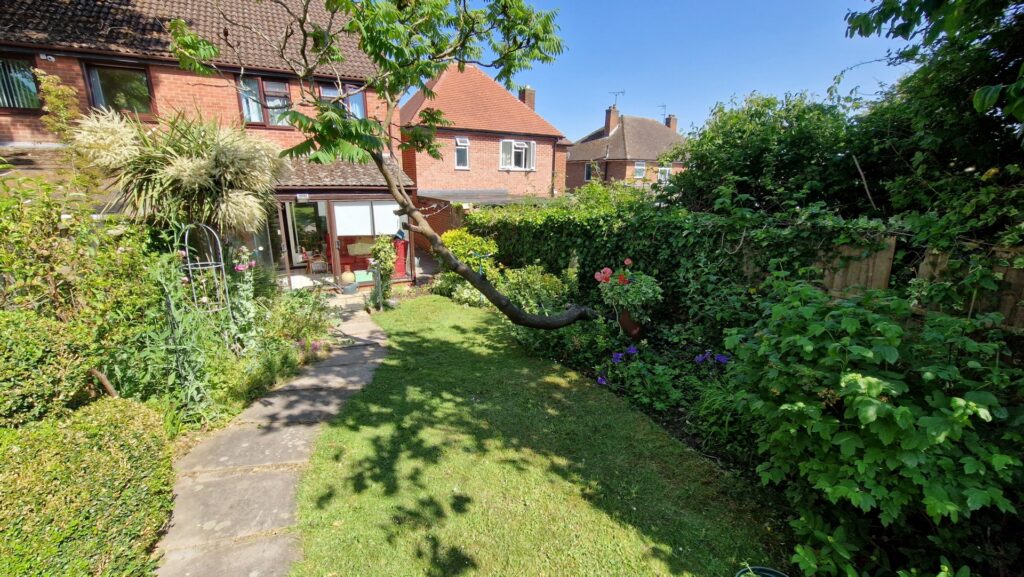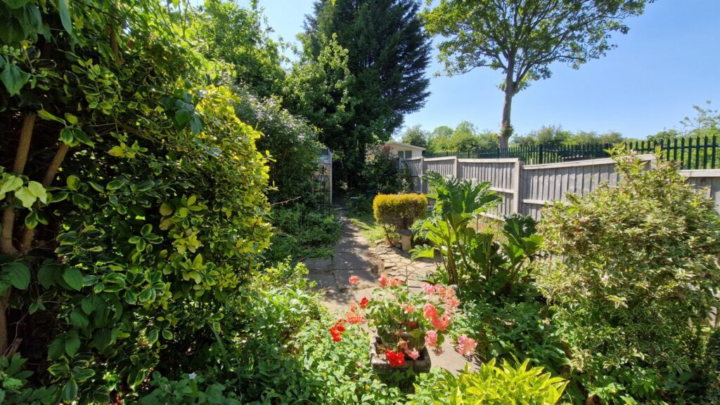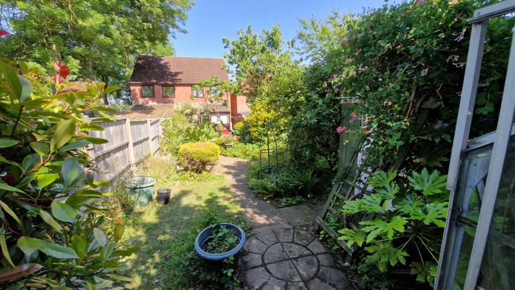 Outside: To the front of the property is a shared driveway providing off road parking for 2-3 vehicles. There is a path to the side of the property that leads to the back garden. To the rear of the property there is a good-sized garden featuring a lawn area surrounded by mature plants, shrubs, and bushes. There is a metal storage shed and a greenhouse towards the top of the garden.