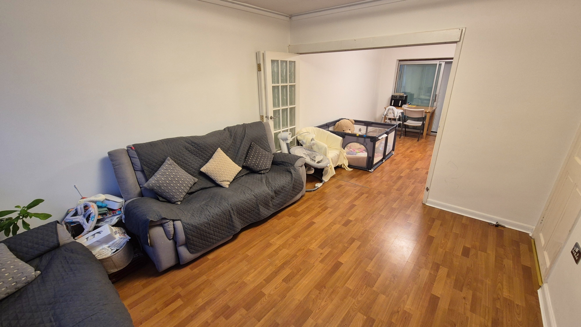 Living Room: 3.40m x 4.30m (11'2" x 14'1"), The living room is located to the front of the property and benefits from a large half bay window with a metal double glazed window overlooking the drive. The room benefits from laminate flooring, a gas central heating radiator and a wooden bi-fold door that leads to the dining room.