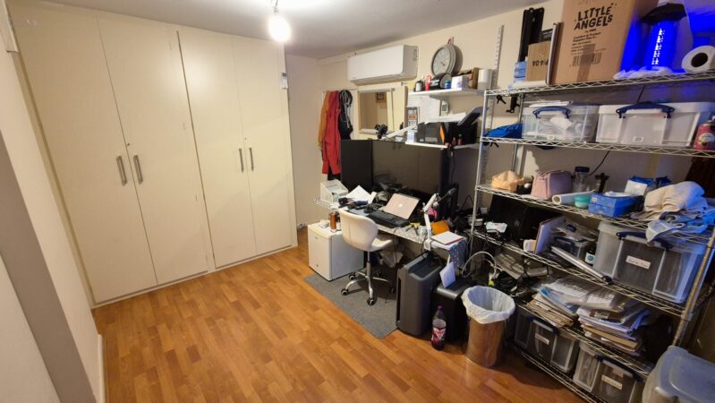 Bedroom 2: 2.95m x 4.30m (9'8" x 14'1"), Bedroom 2 is located to the front of the property over the living room. It is currently being used as an office and benefits from 2 built in cupboards, a double glazed window, laminate flooring, and a gas central heating radiator. The room also features an air conditioning unit which both heats and cools.