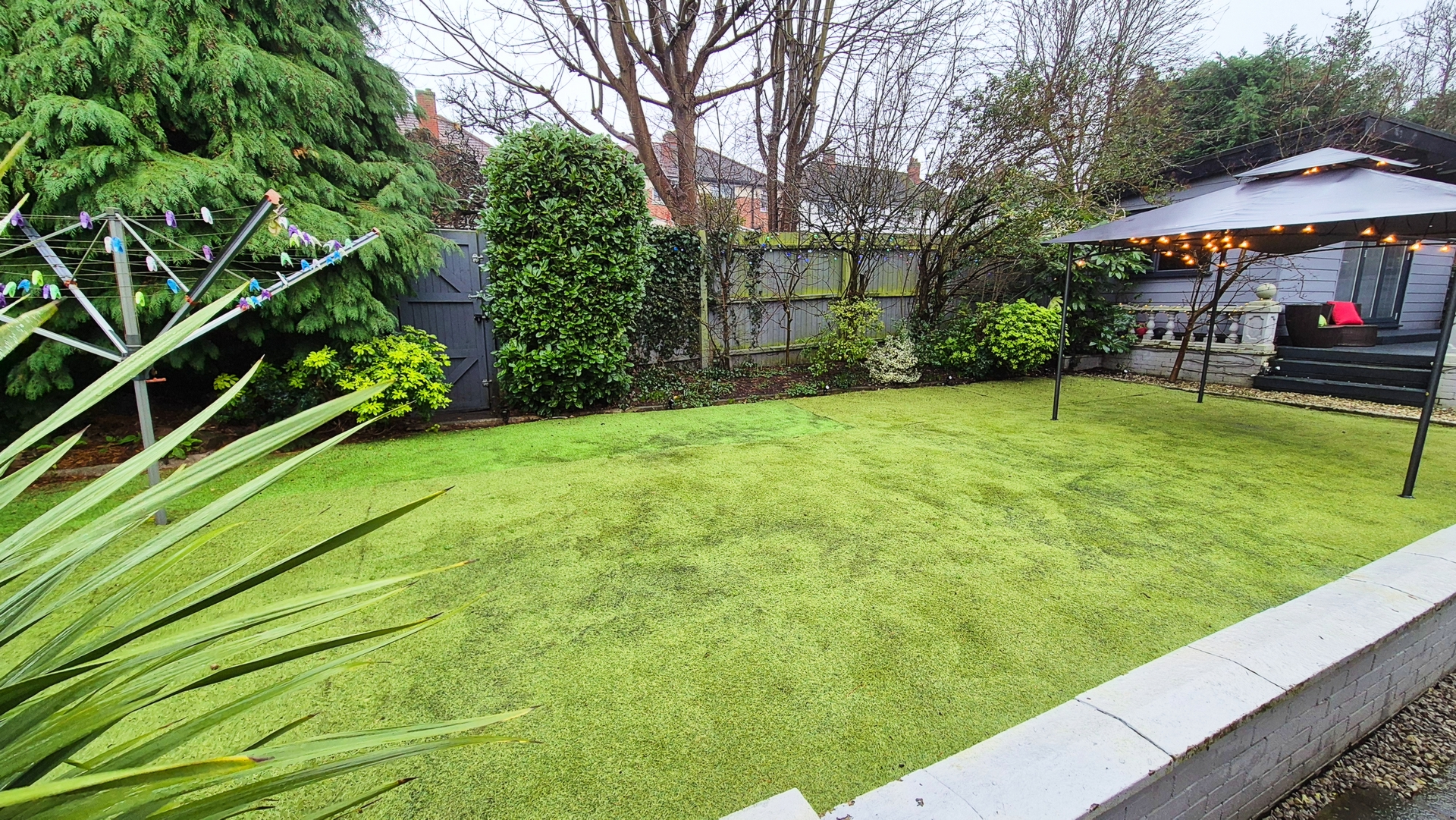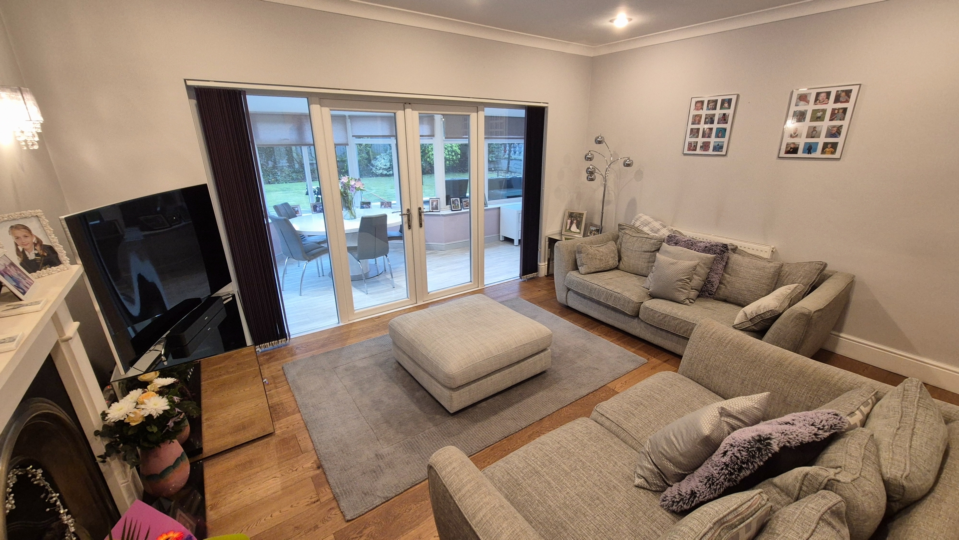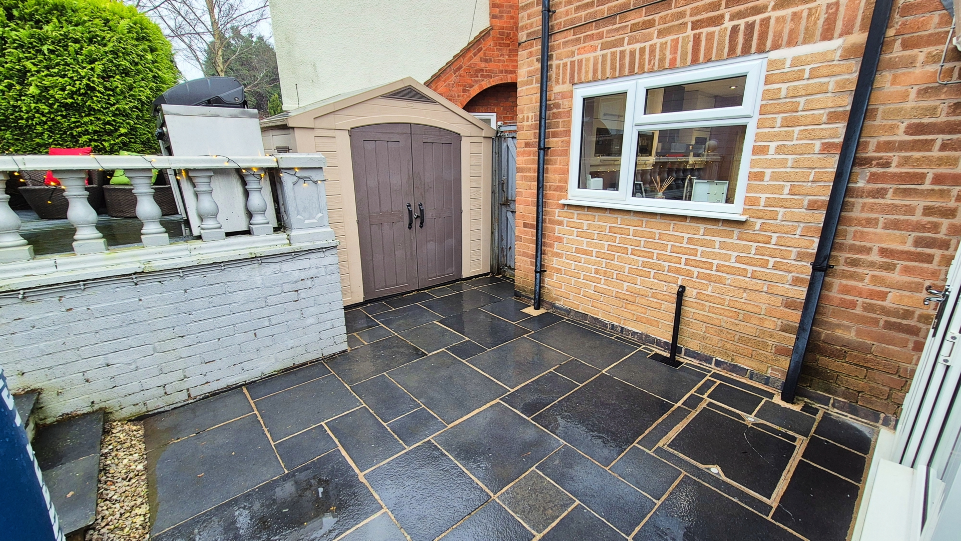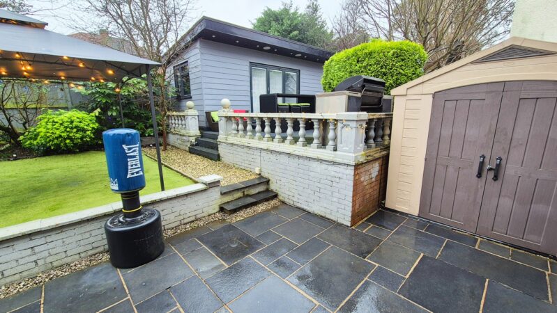 Outside: To the rear of the property there is an easy maintenance garden made up of a patio, a large astro turf lawn area and a raised deck on top of which there is a large garden room. To the side of the property there is a small wooden shed for storage and to the other side there is a large plastic shed located next to a wooden gate that leads to the driveway. To the front of the property there is a large Tarmac driveway with a wall mounted electric car charger.