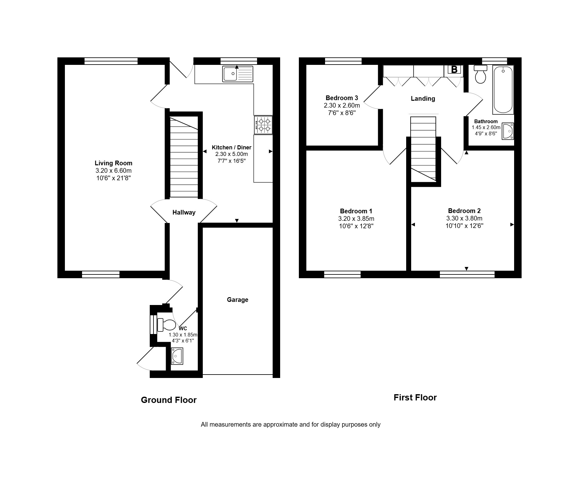 Bedroom 1: 3.20m x 3.85m (10'6" x 12'8"), Bedroom 1 is located to the front of the property over the living room. It benefits from a UPVC double glazed window and a gas central heating radiator.