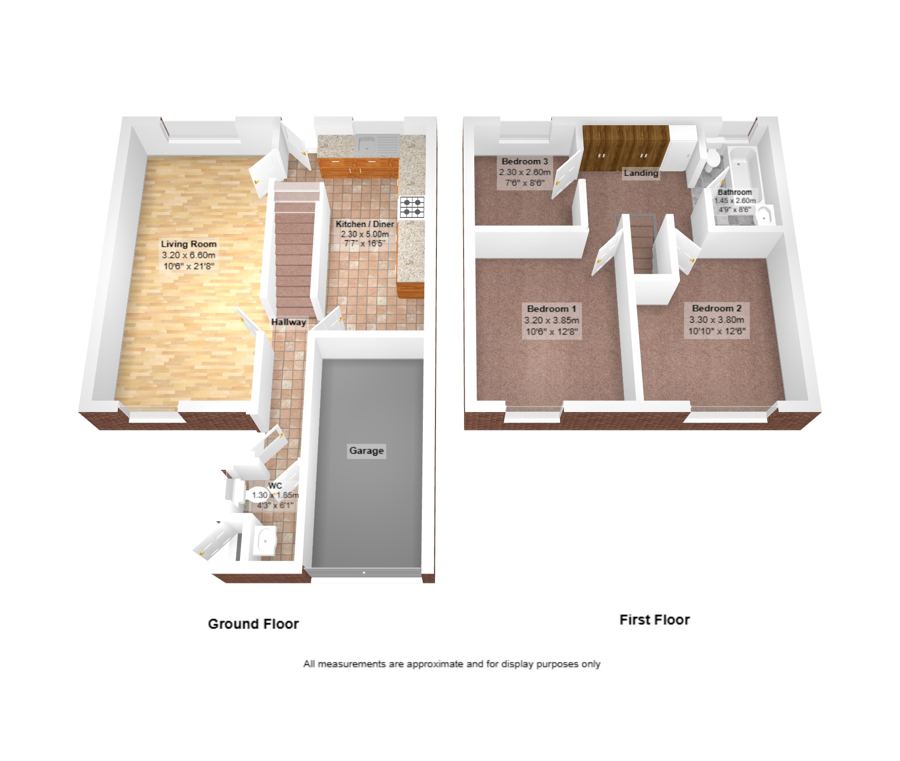 Bedroom 3: 2.30m x 2.60m (7'7" x 8'6"), Bedroom 3 is located to the rear of the property over the living room. It benefits from a UPVC double glazed window and a gas central heating radiator.