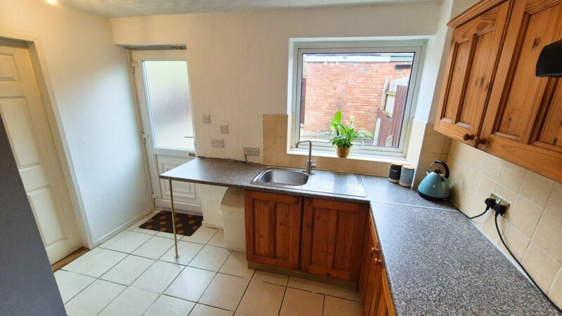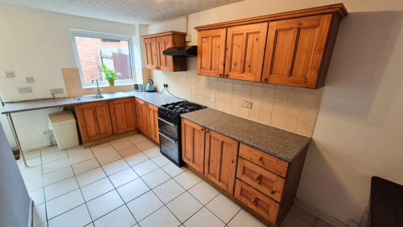 Kitchen / Diner: 2.30m x 5.00m (7'7" x 16'5"), The kitchen / diner is located to the rear of the property and can be accessed from either the living room or the hallway. There are a range of matching wall and base units with a granite effect worktop including a freestanding gas cooker with a cooker hood above and spaces for a freestanding washing machine and tumble dryer. The room also benefits from a gas central heating radiator, a UPVC double glazed window and a UPVC double glazed door that leads to the garden.