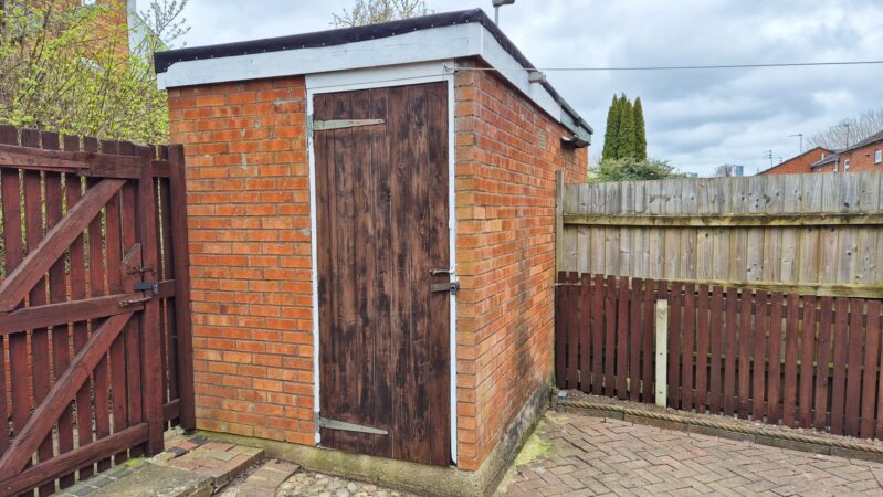 Outside: To the front of the property there is a driveway that provides parking for 2-3 vehicles and an integral single garage. To the rear is an easy maintenance garden made up primarily of patio areas with a small border for plants. There is also a brick-built storage shed and a gate that leads to the access behind.