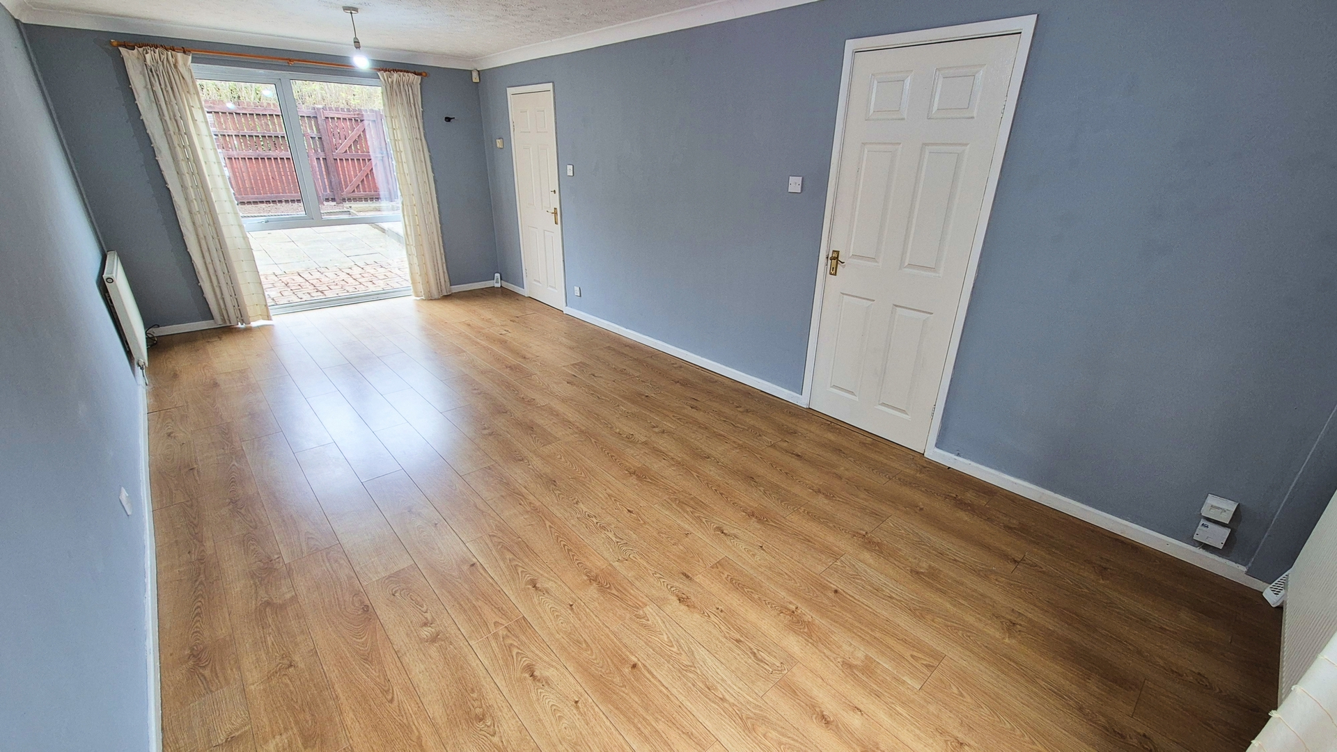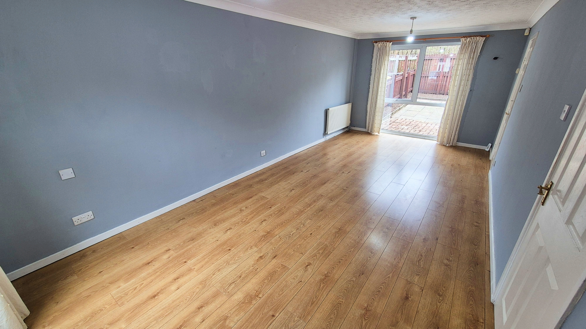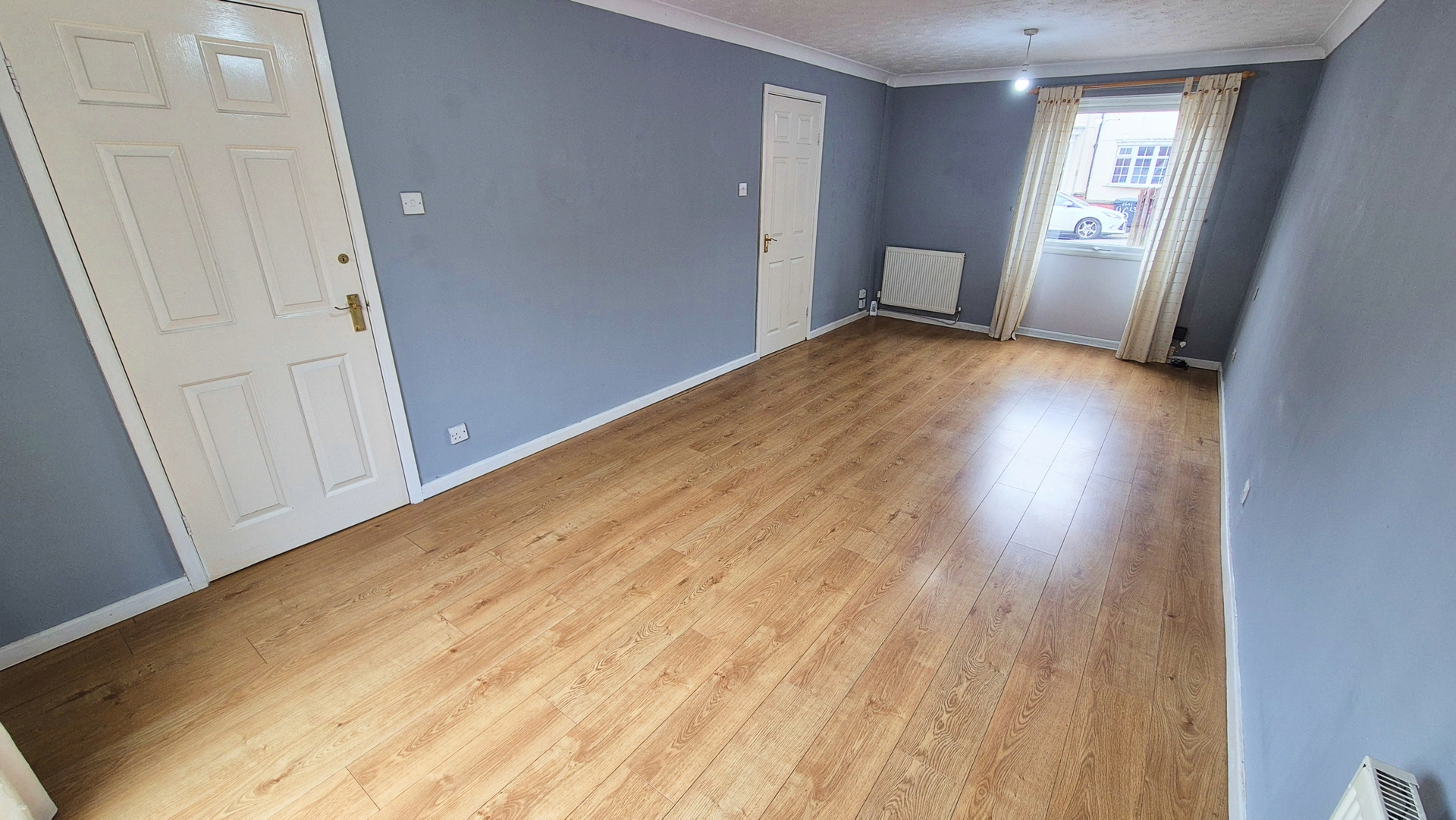 Living Room: 3.20m x 6.60m (10'6" x 21'8"), The Living Room features UPVC double glazed windows both front and back, giving it dual aspect views and plenty of light. It also benefits from laminate flooring, 2 doors and a gas central heating radiator.