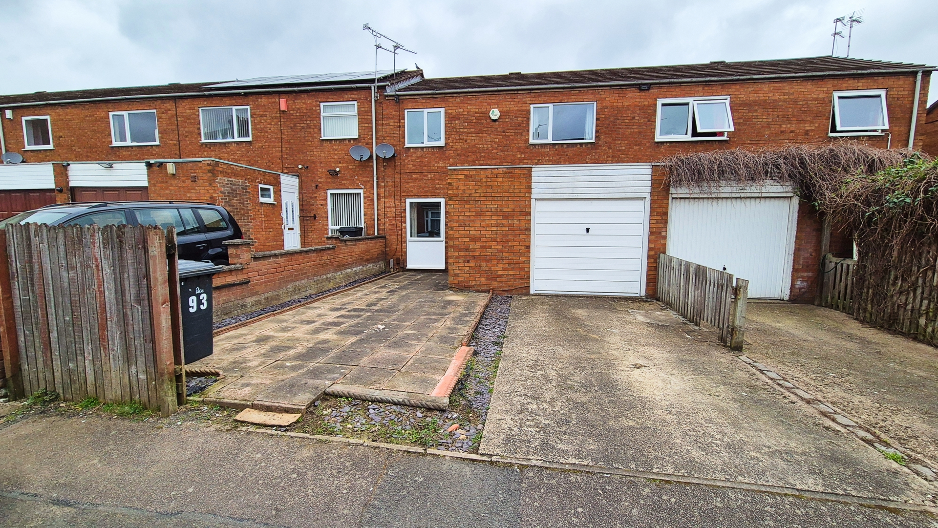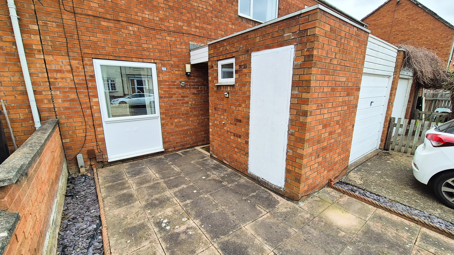 Outside: To the front of the property there is a driveway that provides parking for 2-3 vehicles and an integral single garage. To the rear is an easy maintenance garden made up primarily of patio areas with a small border for plants. There is also a brick-built storage shed and a gate that leads to the access behind.