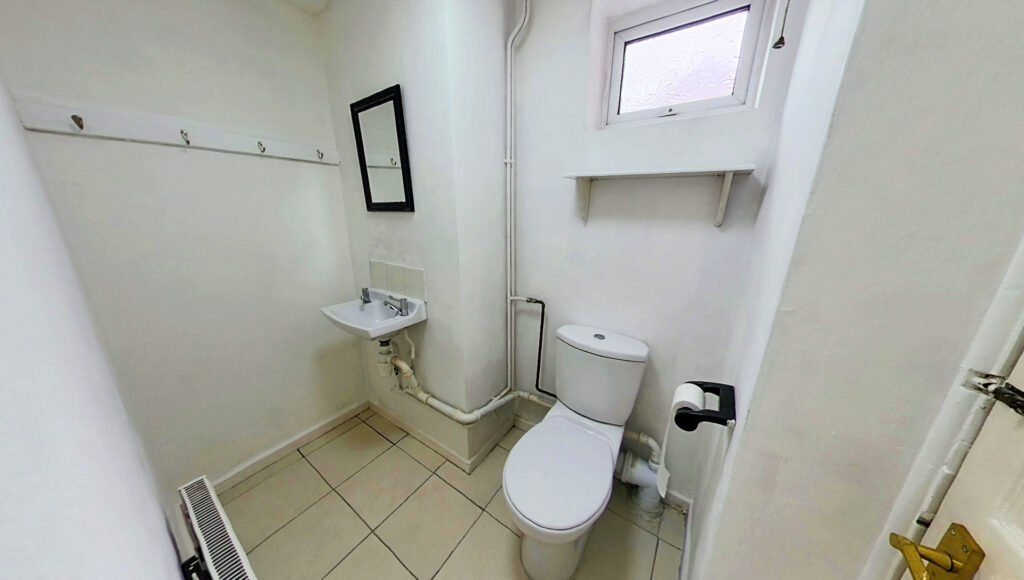 Downstairs WC: 1.30m x 1.85m (4'3" x 6'1"), The downstairs WC is located to the front of the property and features a push button toilet and a wall mounted wash hand basin. There is also a UPVC double glazed window with privacy glass and a gas central heating radiator.