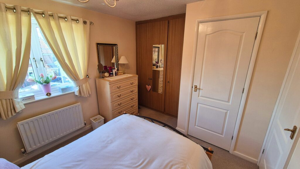 Bedroom 1: 3.80m x 2.90m (12'6" x 9'6"), Bedroom 1 is located to the front of the property over the living room. It features a large built-in wardrobe and also benefits from an airing cupboard that houses the hot water tank, a UPVC double glazed window and a gas central heating radiator.